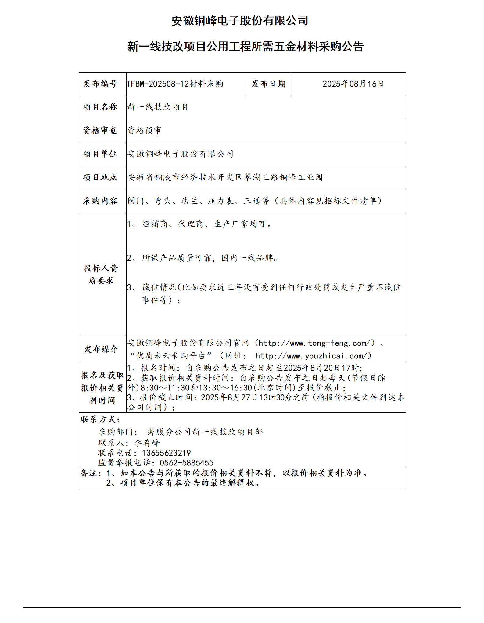 安徽銅峰電子股份有限公司 (新一線項(xiàng)目五金材料采購)_01