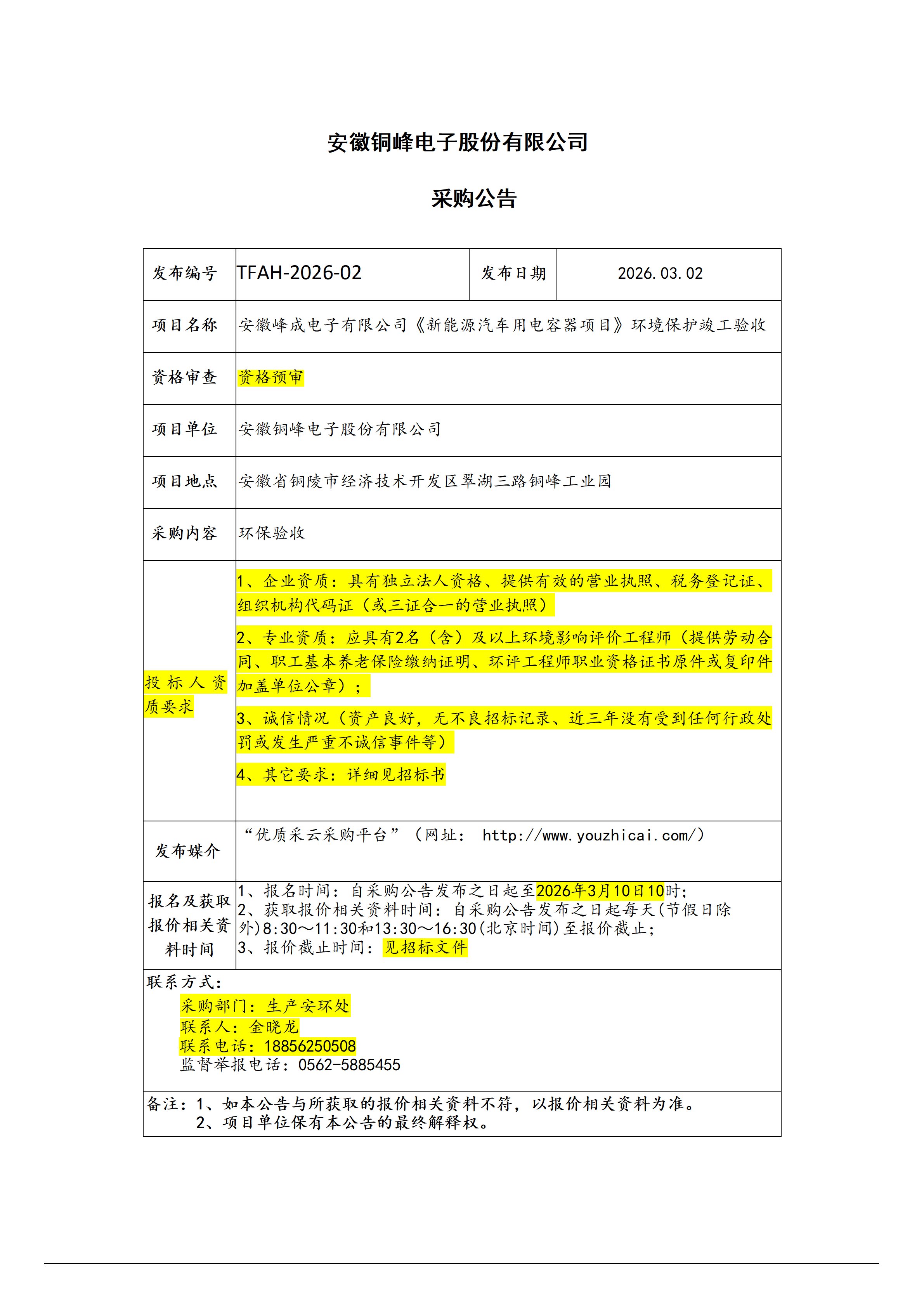 安徽銅峰電子股份有限公司 (項目環(huán)保驗收招標公告 )_01