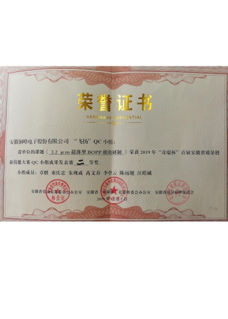 首屆安徽省質(zhì)量創(chuàng)新技能大賽二等獎