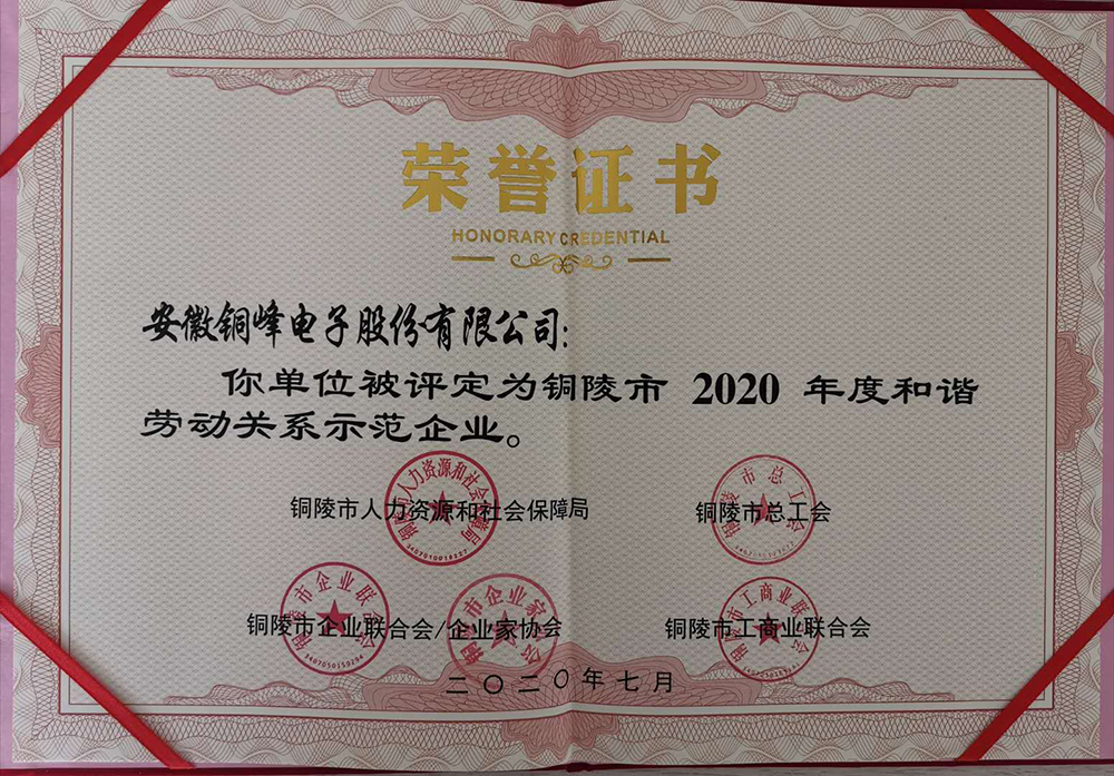 銅陵市和諧勞動關(guān)系示范企業(yè)