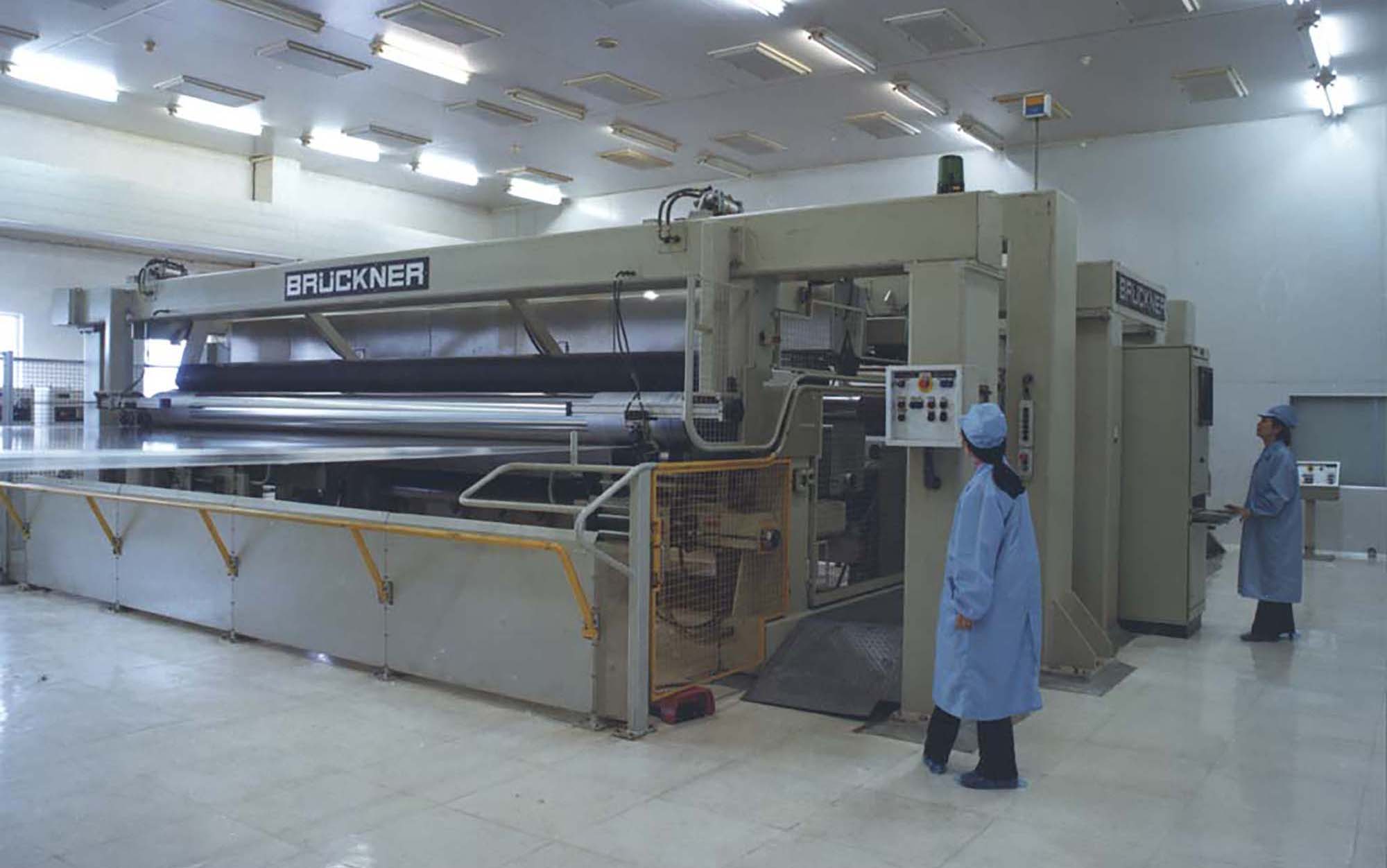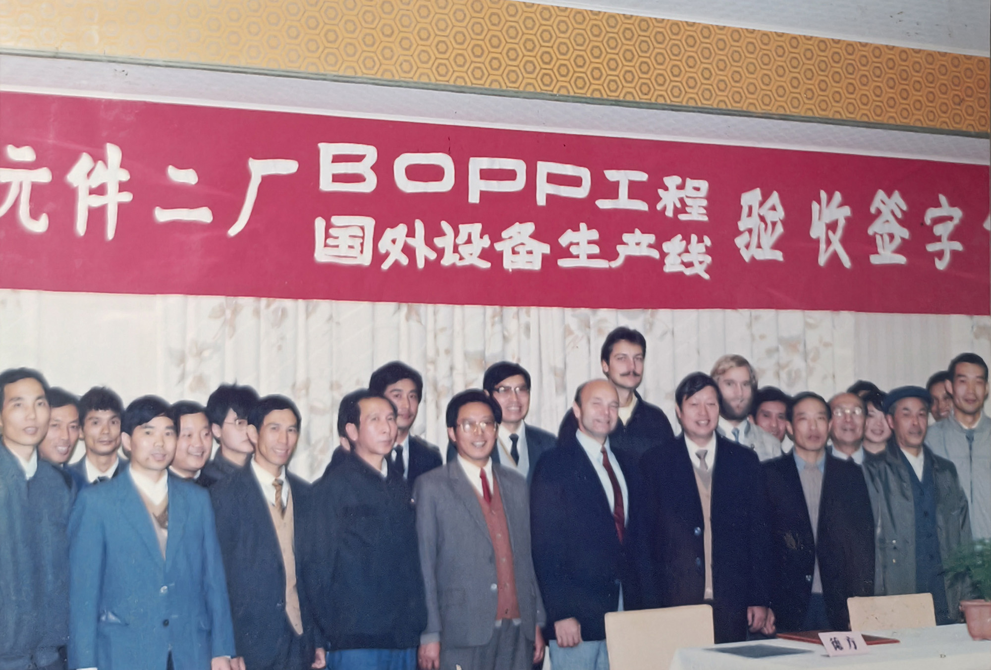 銅峰“老一線”于1989年建成投產(chǎn)。上世紀80年代,當時國內(nèi)電容器用聚丙烯膜幾乎完全依賴進口,嚴重制約了我國電容器等相關(guān)產(chǎn)業(yè)的發(fā)展。銅峰公司前身銅陵市無線電元件二廠積極響應國家需求,決定從國外引進雙向拉伸電容器用聚丙烯膜生產(chǎn)線。1985年項目啟動,經(jīng)過一系列籌備工作,1986年獲得國家計委批準立項,并被列入國家 “七五” 機械電子工業(yè)重點技改項目。1988年,主線和相關(guān)輔助設(shè)備成功引進。經(jīng)過一年多的緊張建設(shè),1989年生產(chǎn)線正式投產(chǎn)。“老一線”的建成投產(chǎn),是銅峰發(fā)展史上具有重要意義的轉(zhuǎn)折點。該線加速了銅峰公司產(chǎn)品結(jié)構(gòu)調(diào)整和轉(zhuǎn)型步伐,并由此形成了全國唯一的“電工三膜”(電容薄膜、金屬化膜和薄膜電容器)一條龍的生產(chǎn)格局,使企業(yè)的經(jīng)濟規(guī)模和技術(shù)水平躍上一個新臺階。