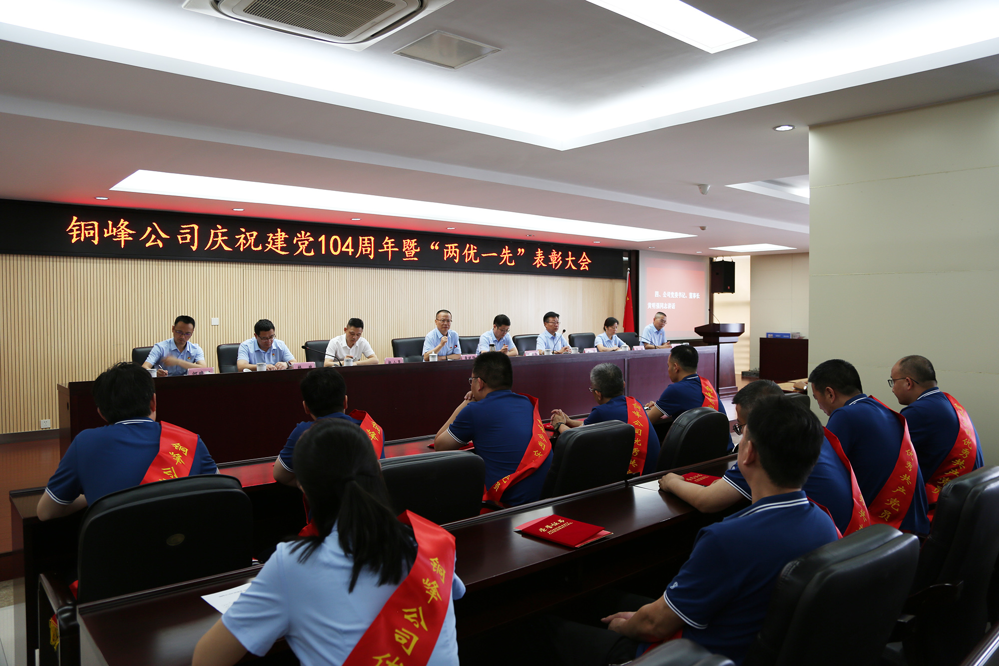 為熱烈慶祝中國共產(chǎn)黨成立104周年,表彰先進、樹立榜樣,激勵廣大黨員干部職工在新征程上展現(xiàn)新作為,6月27日下午,公司在辦公大樓二樓職教室隆重召開慶祝建黨104周年暨“兩優(yōu)一先”表彰大會。公司黨委書記、董事長黃明強出席大會并講話,黨委委員、總經(jīng)理鮑俊華宣讀表彰決定,黨委副書記潘世宇主持會議并就貫徹落實會議精神作出部署。公司黨委領導班子成員和公司級黨員領導,紀委委員,各黨(總)支部書記、委員,“兩優(yōu)一先”表彰對象、黨員代表、新黨員、入黨積極分子代表等參加會議。